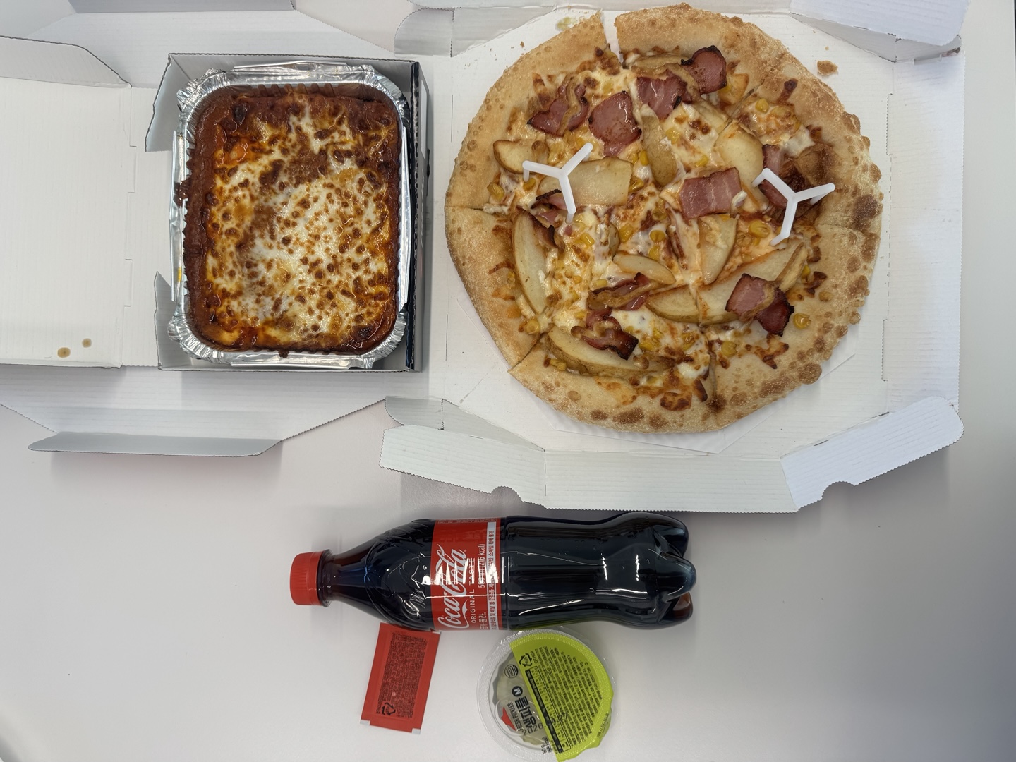 피자는 스모키미트 스페셜과 포테이토 스페셜 중 한 가지를 선택하는 것이었는데, 취향에 맞게 포테이토 피자를 선택했어요.