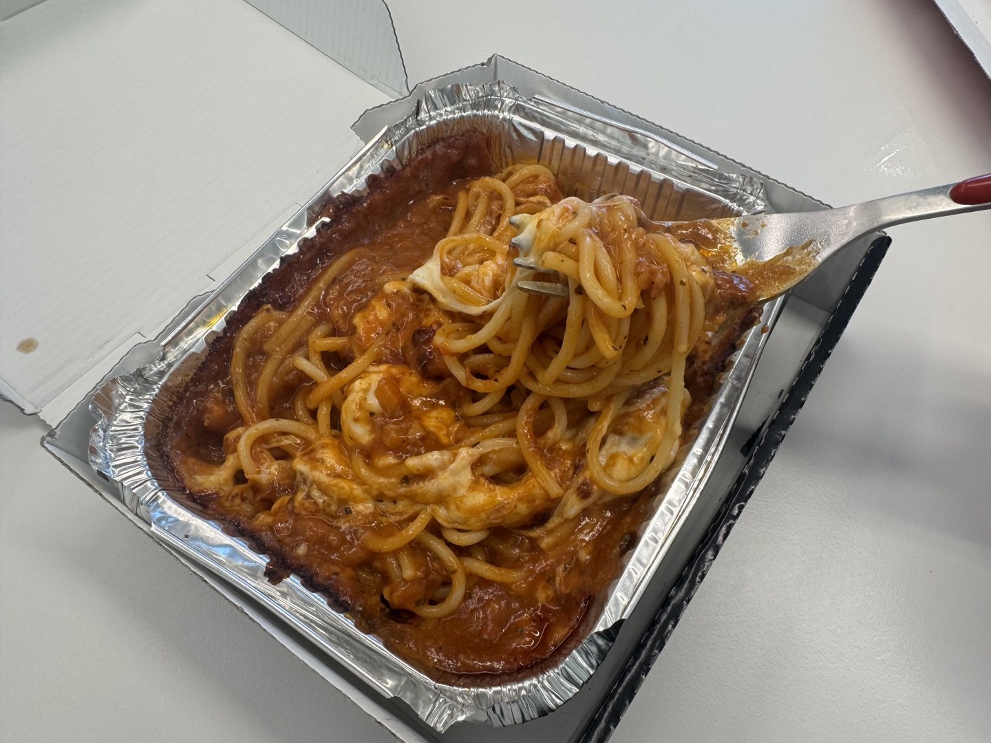 따뜻할 때 잘 섞어서 먹으니 고소한 치즈와 진한 토마토 소스의 풍미가 잘 어울려요.