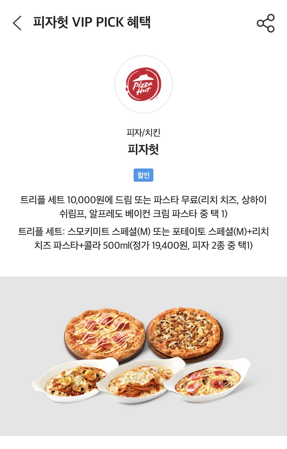 SK VIP PICK으로 자주 등장하는 혜택이니 집 근처에 피자헛이 있으신 분들은 한 번쯤 이용하기 좋을 듯한 트리플 세트 후기였습니다.😆